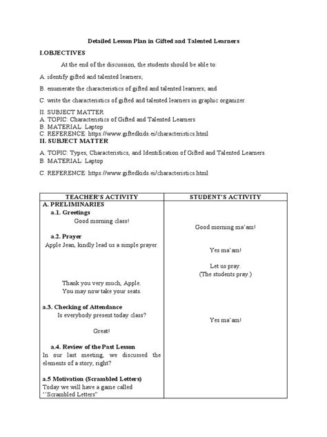 ERO - Download I Lesson Plan Modified For Gifted And Talented 120564 PDF PDF Gutenberg